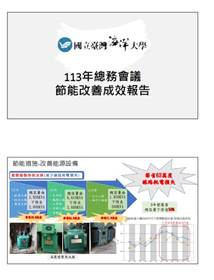 近年政府帶頭節能,以「政府機關及學校用電節約能源提升計畫」(113~115年)定期管考能源使用情形,以112 年為基期年, 於115 年提升整體用電效率3%,本校為配合行政院執行該計畫,定期召開會議擬定本校年度節能目標與措施,並逐年檢討改善。